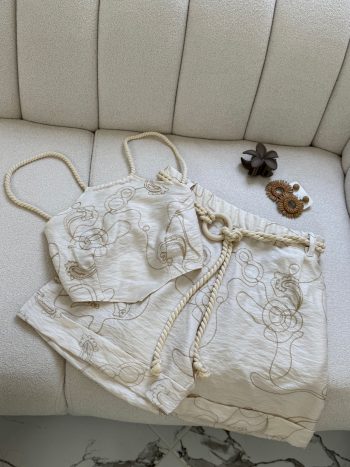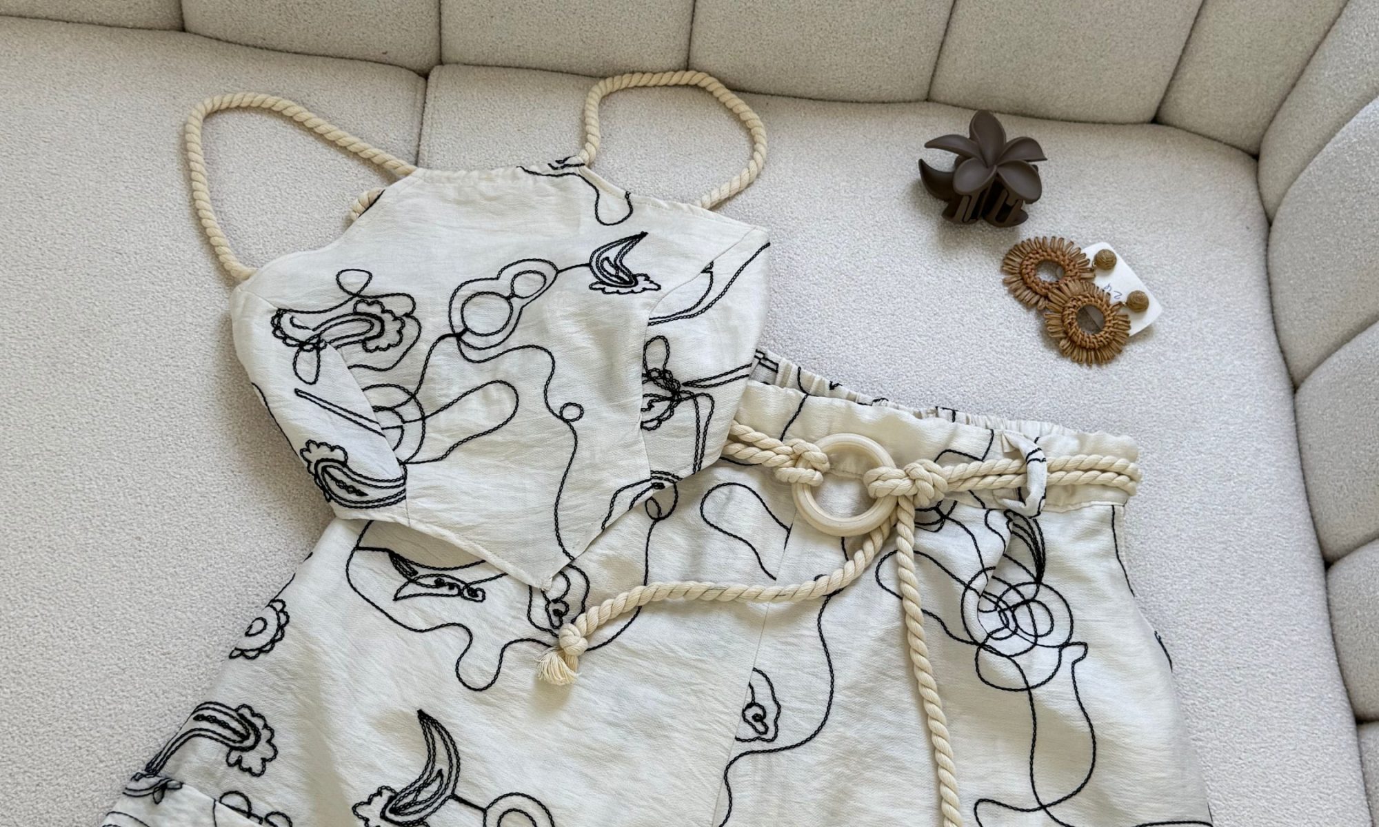 Tissu : Lin brodé beige